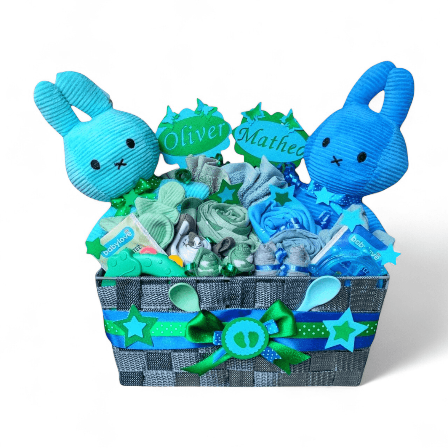 Hledáte krásný a praktický dárek k narození dvojčat? Tento dárkový koš s bohatou výbavou potěší každé novopečené rodiče. V praktickém koši najdete pečlivě vybrané dětské doplňky, které jsou nejen roztomilé, ale především praktické pro první měsíce miminka.
