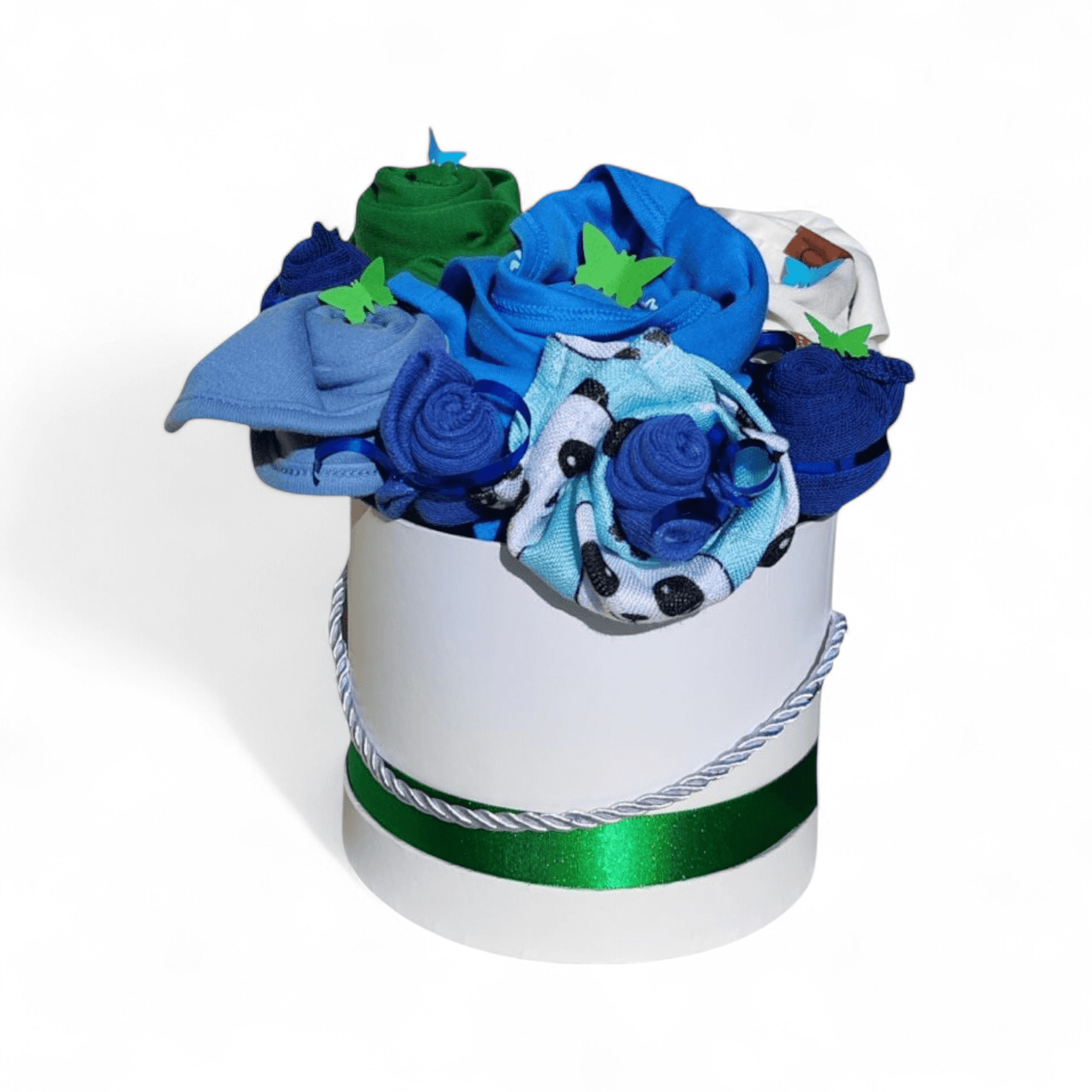 Praktický dárek, který nezůstane ležet – na rozdíl od klasické kytice má skutečné využití – obsahuje věci, které rodiče pro miminko opravdu potřebují (pleny, body, ponožky apod.).
