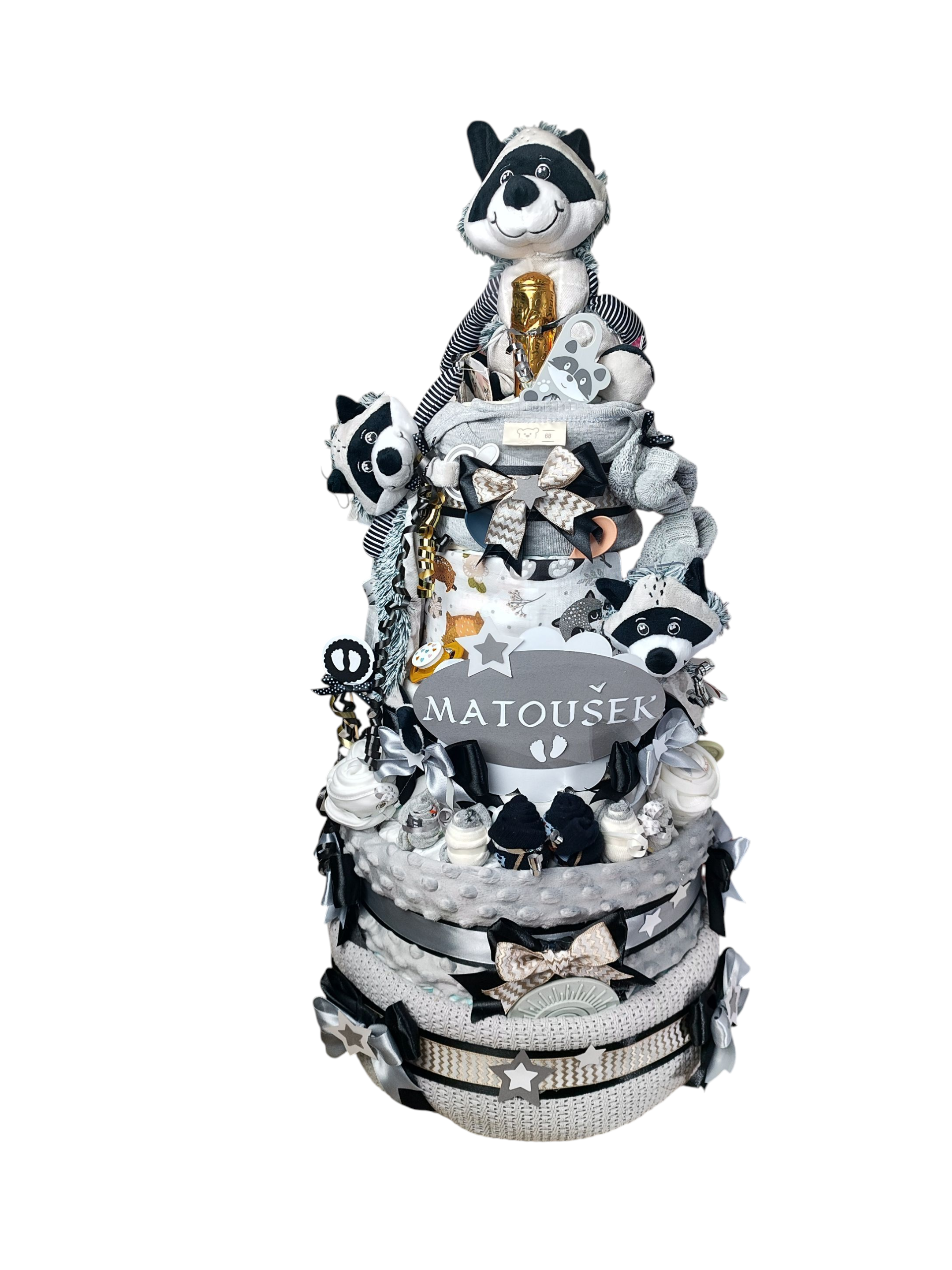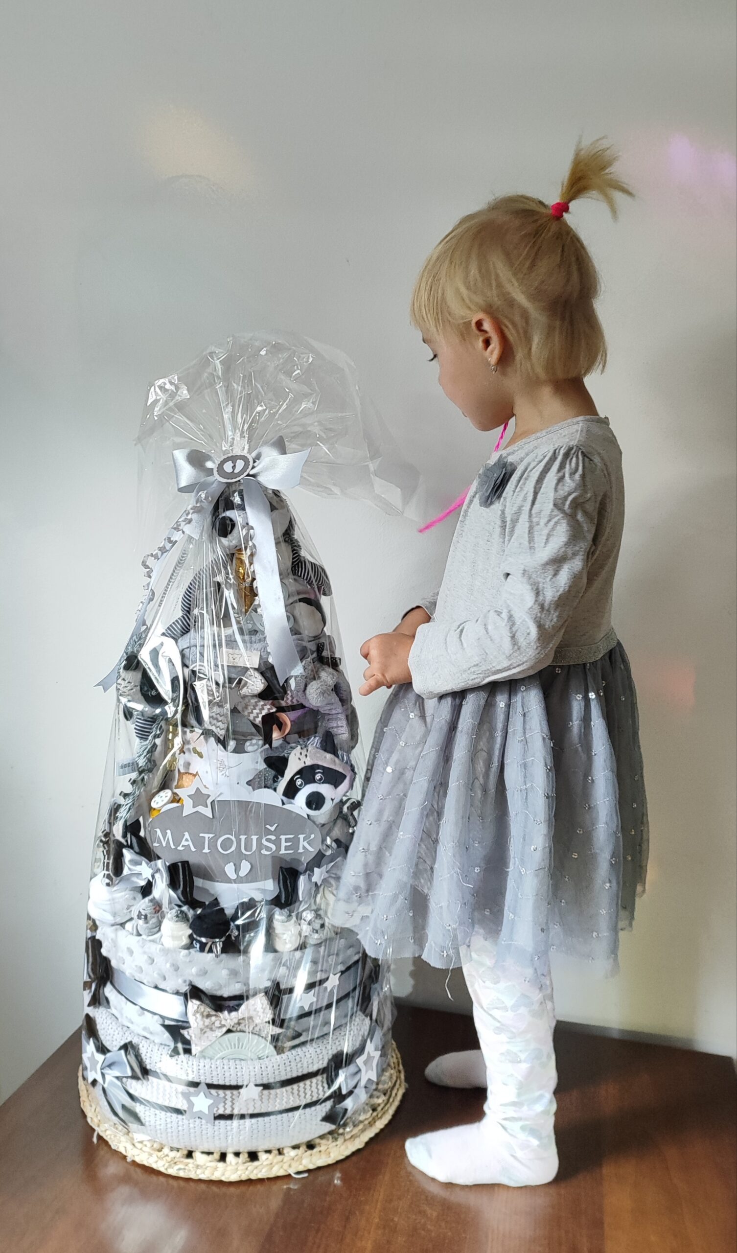 - mašle, stuhy, dekorace, servírováno na podnose a dárkově zabaleno v celofánu s mašlemi