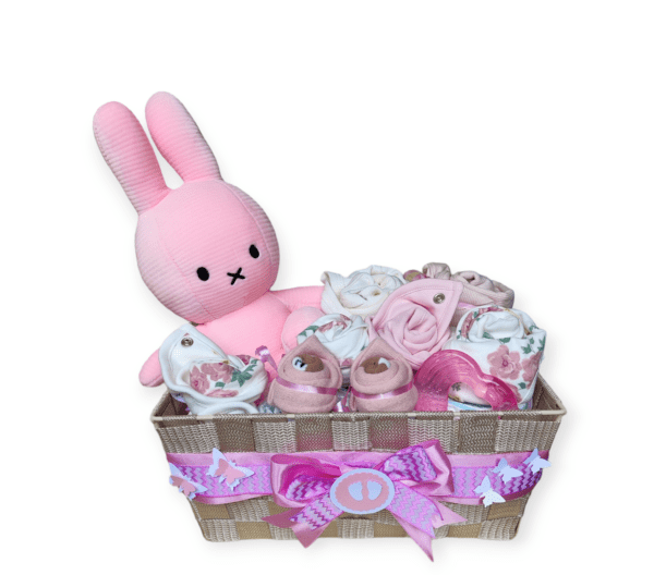 BabyDort dárkový koš pro miminko růžový ZAJÍČEK (video)