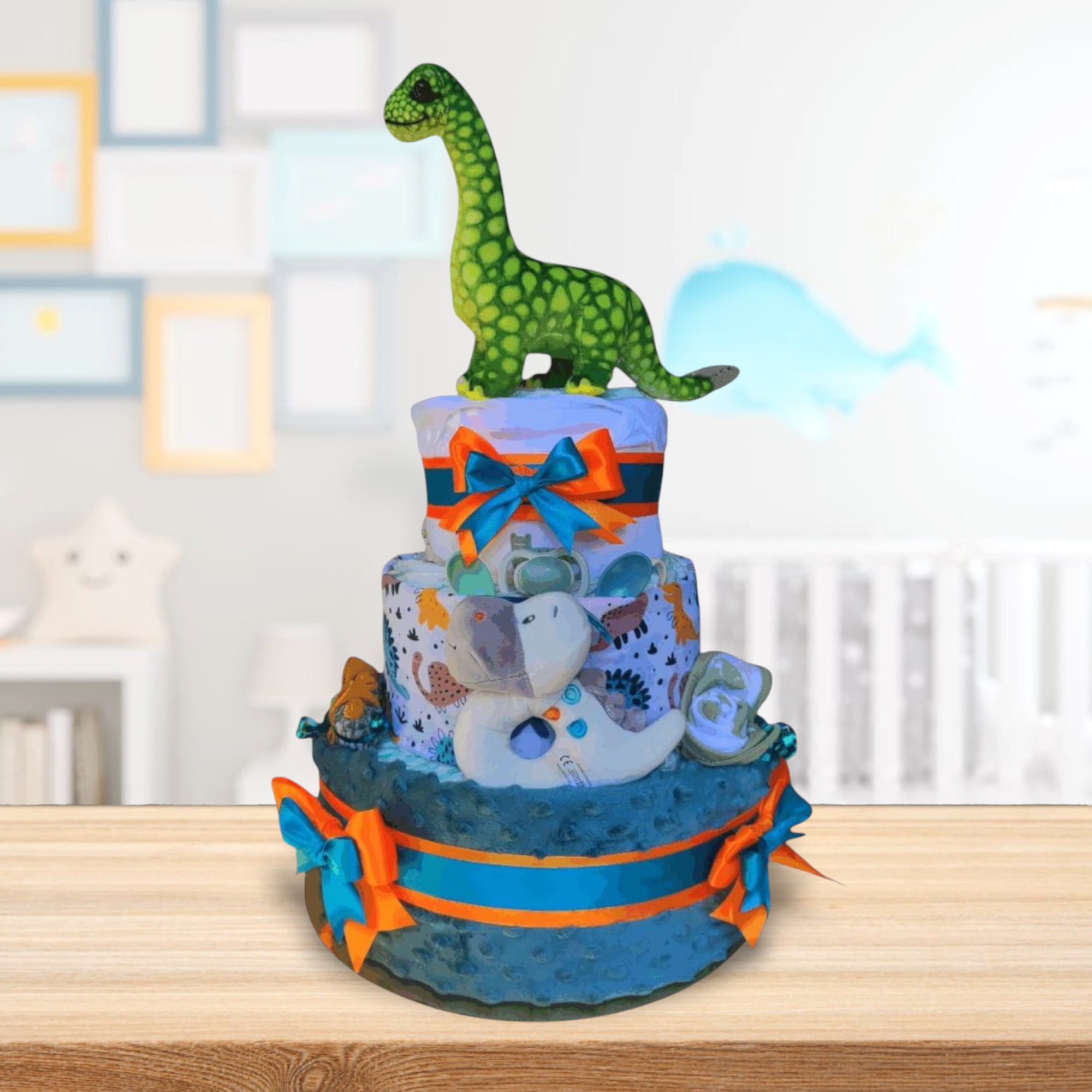 BabyDort třípatrový plenkový dort pro miminko DINO (video)
