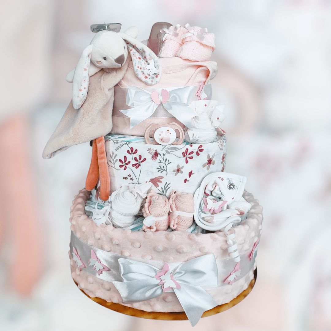 Plenkový dort je servírován na dortovém podnose, ozdoben mašlemi, stuhami a dekoracemi a dárkově zabalen do celofánu. Díky tomu je připraven rovnou k předání jako krásný dárek pro maminku i miminko. Součástí balení je také věnovací kartička s možností vlastního textu. Do poznámky v objednávce stačí napsat text, který chcete na kartičku uvést.